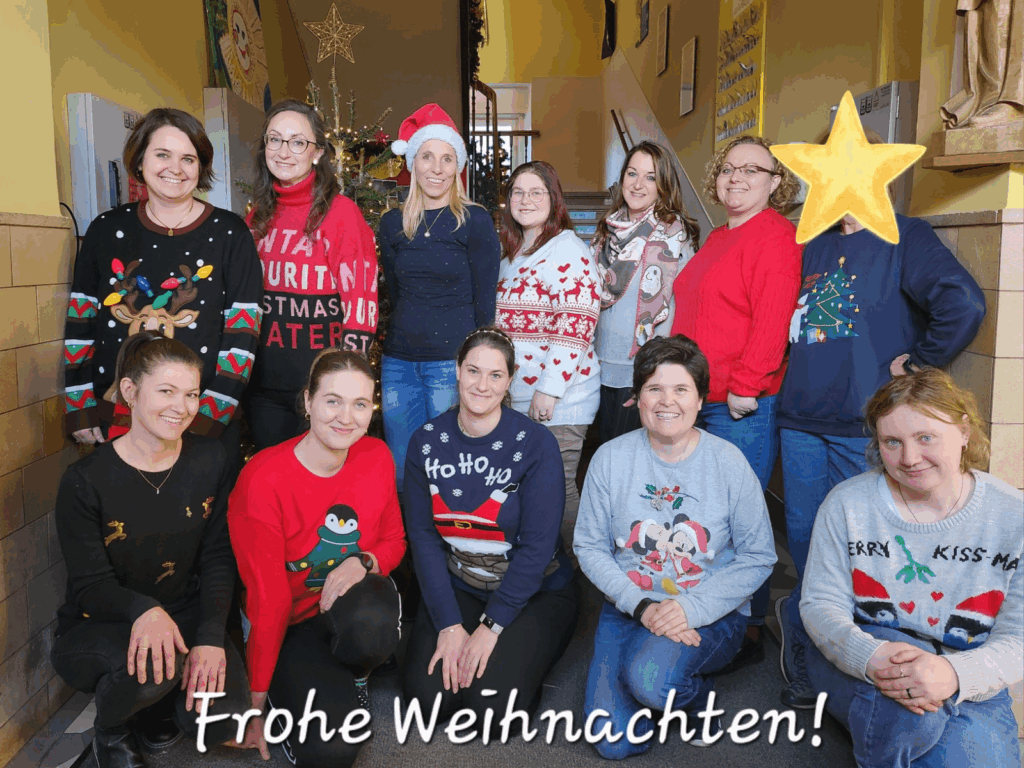 Aktuelle Termine Schnuppernachmittage: 20.11 und 22.01. jeweils von 14:30 – 15:30 (bitte vorher telefonisch anmelden) Maria-Ward-Grundschule Heiligenstatt Wir haben die Chance die Kinder kennen zu lernen – nicht nur die Schüler Unser Christbaum24. Dezember 2025 Vielen Dank an den Elternbeirat für die wunderschöne Weihnachtsdeko…Weiterlesen →Welt-Down-Syndrom-Tag27. April 2025Am 21.03. fand der Welt-Down-Syndrom-Tag statt. Passend dazu bekamen wir…Weiterlesen →Unsere neue Krippe2. Dezember 2024Am Montagvormittag herrschte große Aufregung an unserer Schule. Es kam…Weiterlesen →Vorlesetag 202419. November 2024Beim Vorlesetag 2024 wurde es magisch in unserer Maria Ward…Weiterlesen →Gottesdienst10. Oktober 2024Mit einem wunderschönen Gottesdienst zum Thema "Du bist eine Note…Weiterlesen →Hochmotiviert in das Jahr 2024!8. Januar 2024Ob Brücken bauen im HSU-Unterricht oder den Englischwortschatz beim Sandwichmachen…Weiterlesen →News Dezember 20234. Dezember 2023Wetterbedingt musste unsere Wäldchenweihnacht in diesem Jahr im Schulhof stattfinden.…Weiterlesen →St. Martin Laternenumzug20. November 2023Bei einem richtigen Laternenumzug darf natürlich der St. Martin auf…Weiterlesen →