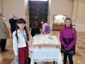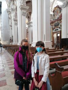 Am 19. Mai fuhr Fr. Blüml zusammen mit Ida S. und Johanna J. nach Passau in den Dom zur Segnung der Kinderbibel. Bei diesem Projekt durften Kinder mehrerer Schulen die Bibel per Hand abschreiben und verzieren. Anschließend wurde daraus die „Heilig.Schüler.Schrift“ gebunden. Diese wurde an diesem Tag feierlich mit einem Gottesdienst geweiht. Den Gottesdienst hielt Bischof Stefan Oster. Diese Bibel wird in den nächsten Monaten auf Wanderschaft gehen. Jede Schule, die an diesem Projekt mitgeschrieben hat, wird die Bibel einige Zeit in Obhut nehmen dürfen. Wir sind schon sehr gespannt, wann wir die schöne Bibel in Empfang nehmen dürfen.