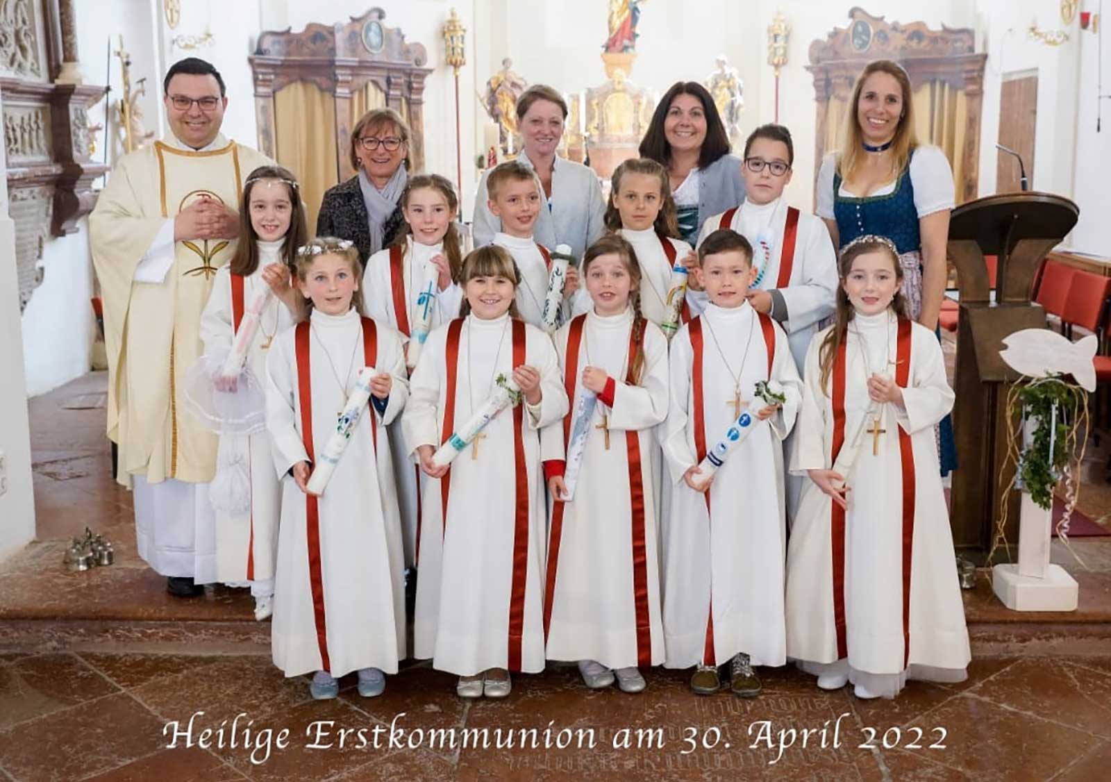Am Samstag, den 30. April 2022 feierten in der festlich geschmückten Heiligenstätter Kirche sieben Mädchen und drei Buben ihre Heilige Erstkommunion unter dem Motto „Jesus, Brot in unserer Mitte“.