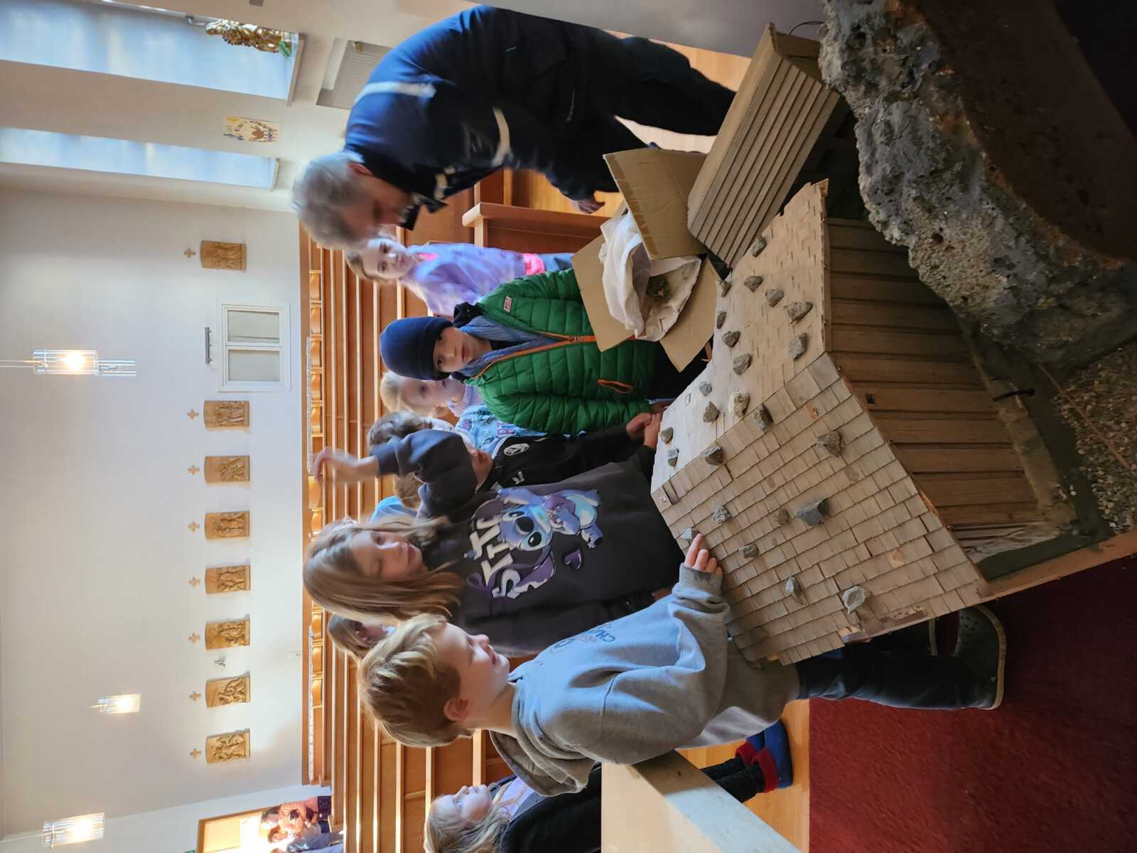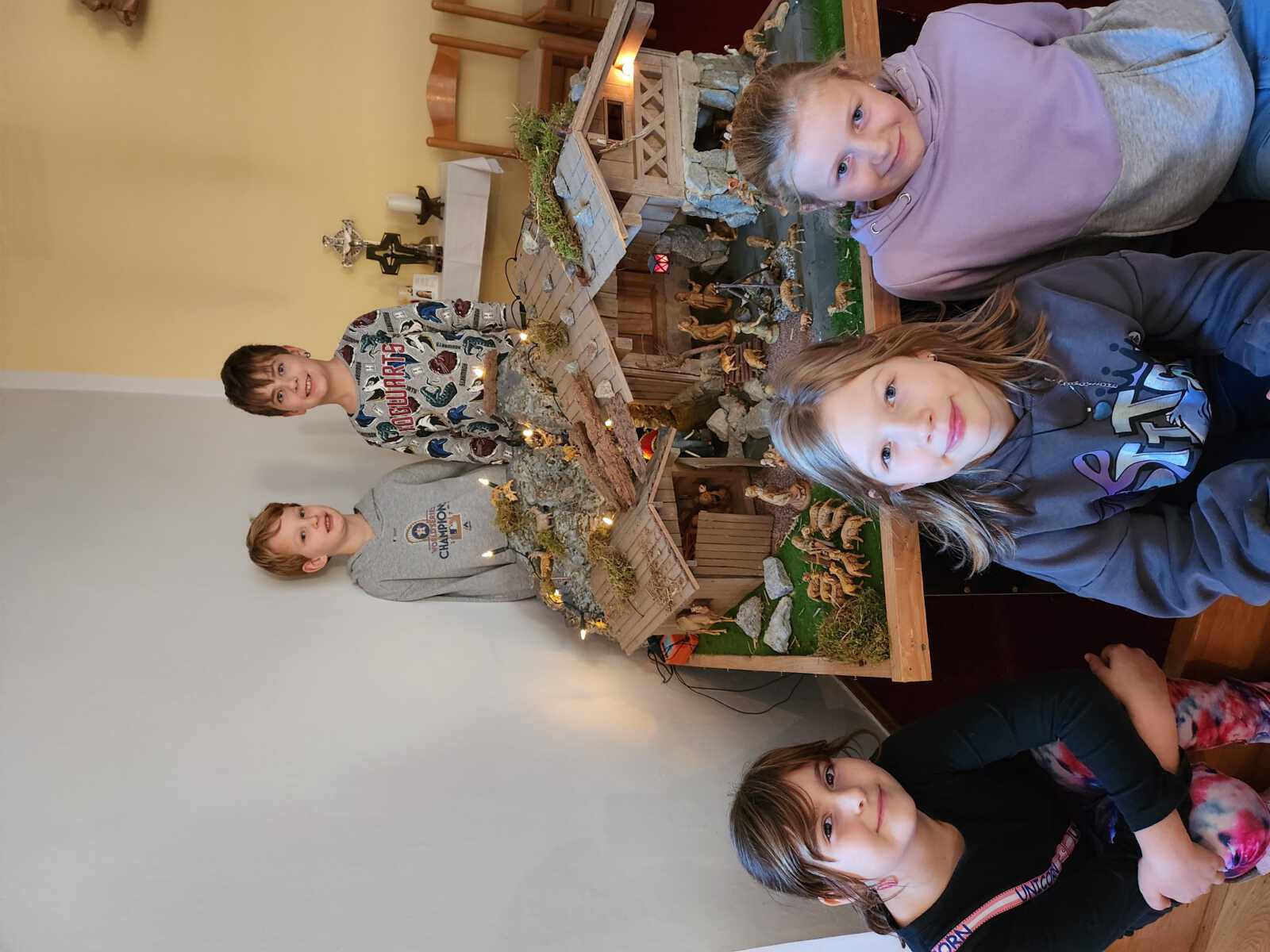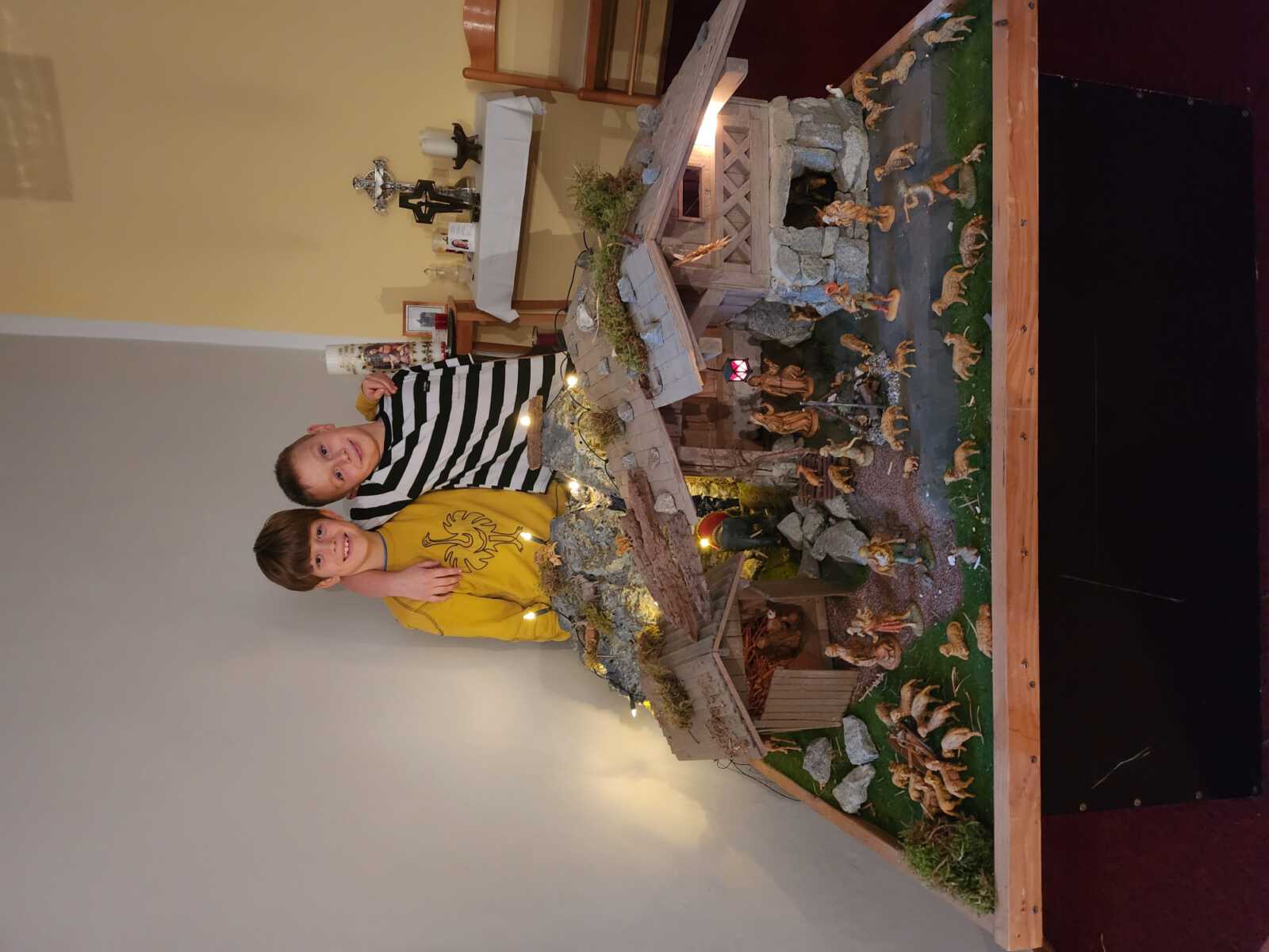 Danach trugen die beiden die Krippe in unsere Kapelle und bauten sie dort zusammen mit den Kindern auf.