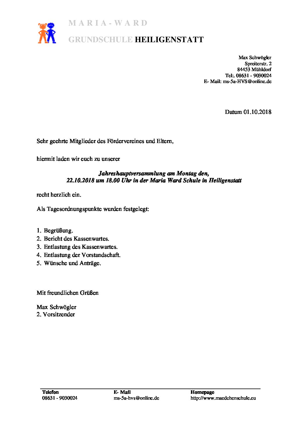 Grundschule Heiligenstatt Heiligenstatt 1, TüßlingHerzlich eingeladen sind die Mitglieder des Fördervereins sowie alle Eltern unserer Schülerinnen und Schüler. Wir freuen uns auf eine zahlreiche Teilnahme!